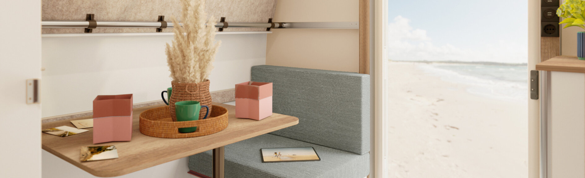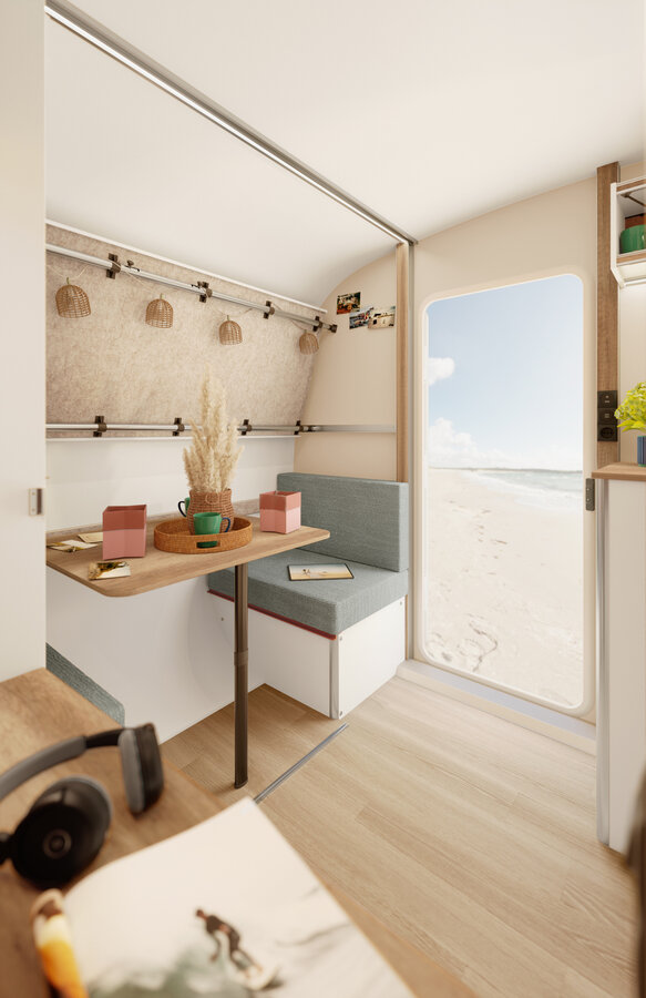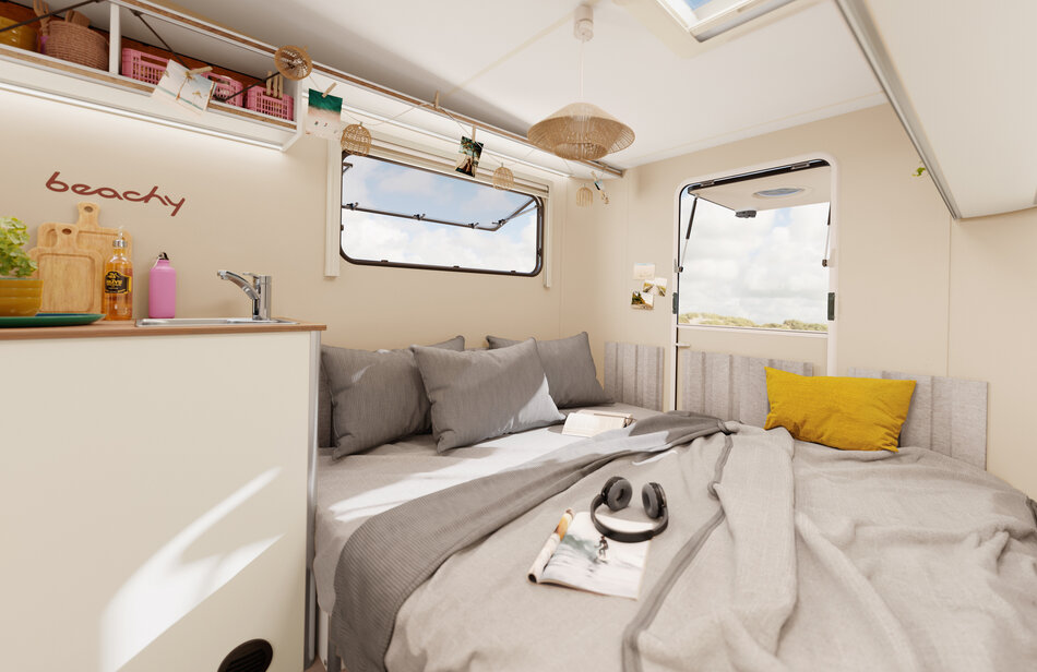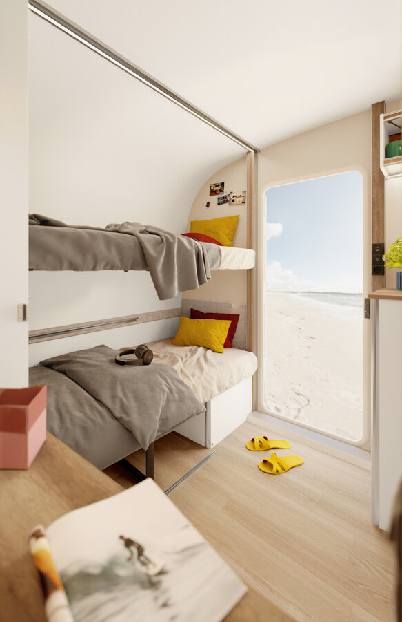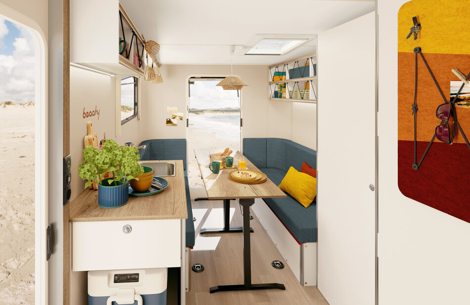 Voor al je grote en kleine plannen. De nieuwe BEACHY 420+. Natuurlijke materialen en stoffen om je goed te voelen. Divers te gebruiken woon- en slaapgedeelte. Handig uitklapbaar stapelbed voor de kinderen. Een look als op strandvakantie. Maak je klaar voor meer.