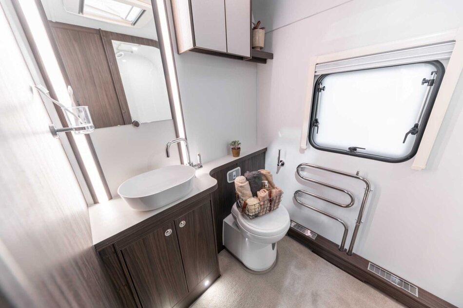 De Elddis Affinity 520 staat bekend om zijn hoogwaardige afwerking en doordachte indeling. De zeer ruime badkamer met een apart toilet en een separate douchecabine biedt u alle luxe en privacy die u onderweg wenst. Met voldoende opbergruimte en een goed uitgeruste keuken ontbreekt het u aan niets. Geniet van de lichte en luchtige sfeer dankzij de grote ramen, en voel u direct thuis waar u ook bent.