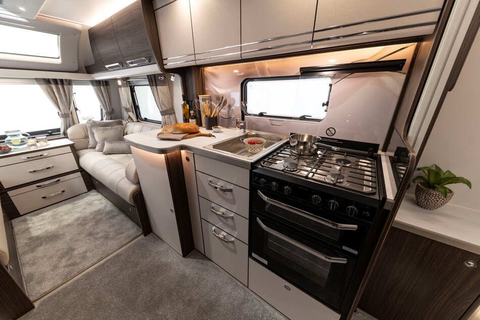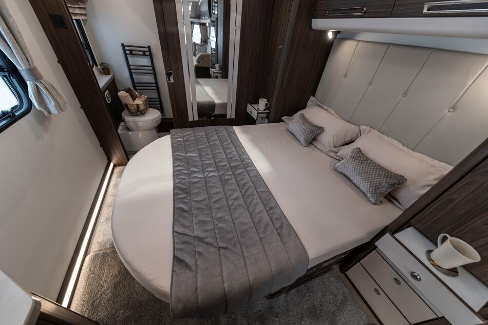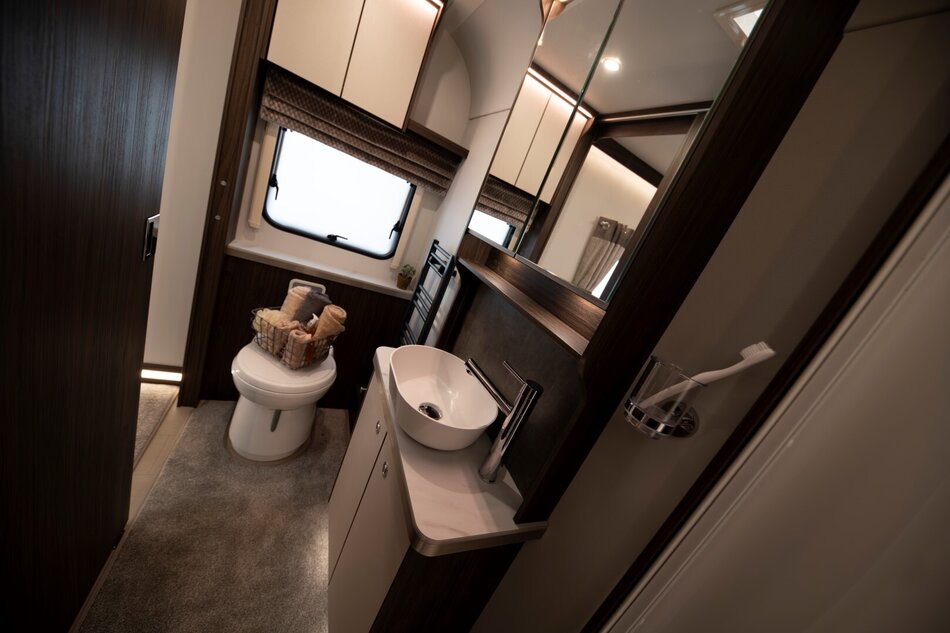 Ontspannen in de weelderige lounge biedt een volledig open en uitgestrekt uitzicht op het hele interieur. Een echt wow-moment! Het lange en weelderige dikke tapijt dat helemaal doorloopt tot aan de achterste wasruimte geeft een gevoel van een 5-sterren luxe hotelsuite. Langs deze vlakte worden uw ogen getrokken naar de prachtige kasten met led-verlichting onder het aanrecht en het rijke gebruik van downlighters die een onmiskenbare Buccaneer-ambiance geven. Terwijl de ene luxe ruimte moeiteloos overgaat in de volgende, dankzij de vloeiende lijnen van het prachtig ingerichte interieur, kunt u ontspannen wetende dat u zich, waar u ook bent, volkomen op uw gemak zult voelen.
