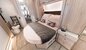 Het interieur is uitgevoerd in een nieuwe lichte houtkleur, een lang dakraam, softclose laden en kastdeuren, dakventilator. Alde verwarming met design badkamer radiator, keukenwand afwerking in acrylaat. Werkelijk alles straalt luxe uit. De buitenzijde kenmerkt zich door een unieke beige metallic kleur met nieuwe graphics.