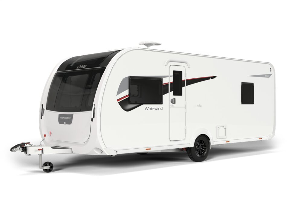 Maak kennis met de geheel nieuwe Elddis Whirlwind-serie, ontworpen om uitzonderlijke waarde te bieden zonder concessies te doen aan kwaliteit. Gebouwd op de populaire bestaande indelingen, biedt de Whirlwind een vereenvoudigd maar modern exterieur met een minimalistisch design, gebruikmakend van een neutrale basiskleur (grijs, wit, zwart) met een opvallende rode accentstreep en Whirlwind-logo.
