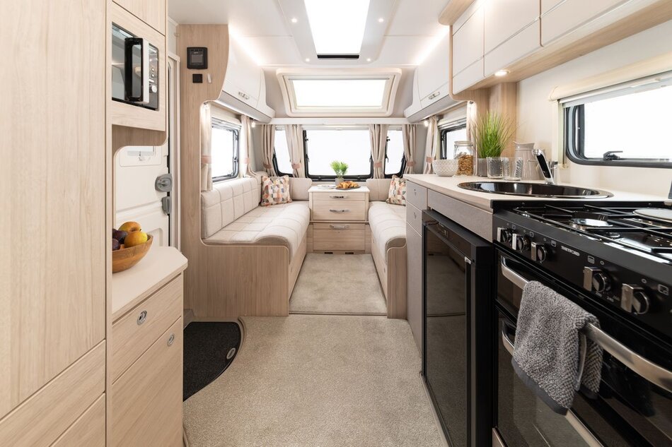 Deze Elddis is een toonbeeld van modern kamperen. De keuken is uitgerust met hoogwaardige apparatuur (oven, grill, kookplaat en koelkast) en dankzij de slimme techniek en isolatie is de caravan geschikt voor alle seizoenen. Of u nu de zon opzoekt of in het najaar op pad gaat, het klimaat binnen is altijd perfect.
