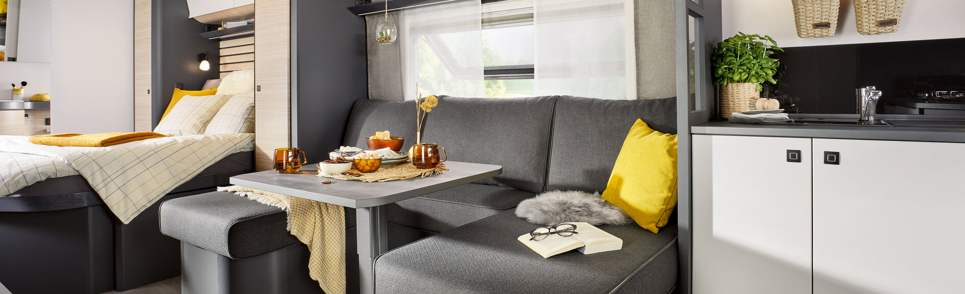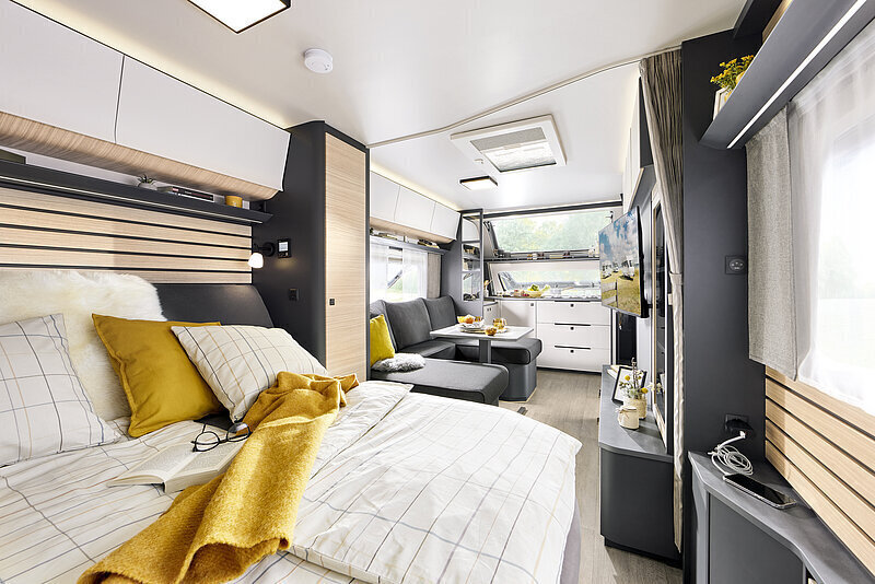 Groot, groter, gigantisch: met tot wel 20 m² is de MAXIA net een vakantieappartement op wielen. Eenpersoonsbedden of vrijstaand queensbed: in deze luxe caravan blijft geen wens onvervuld. Royale wasruimten en qua kleur op elkaar afgestemde woon- en slaapgedeelten maken de premiumcaravan perfect.
