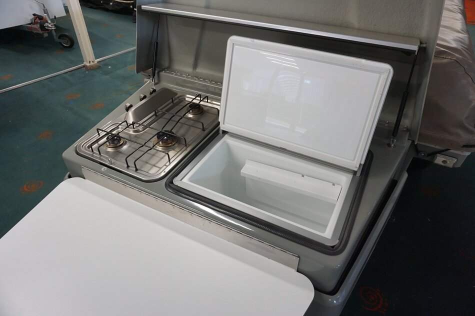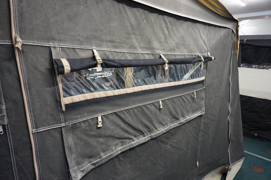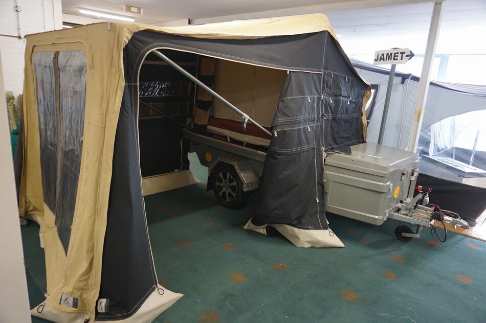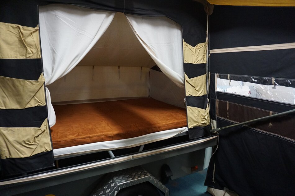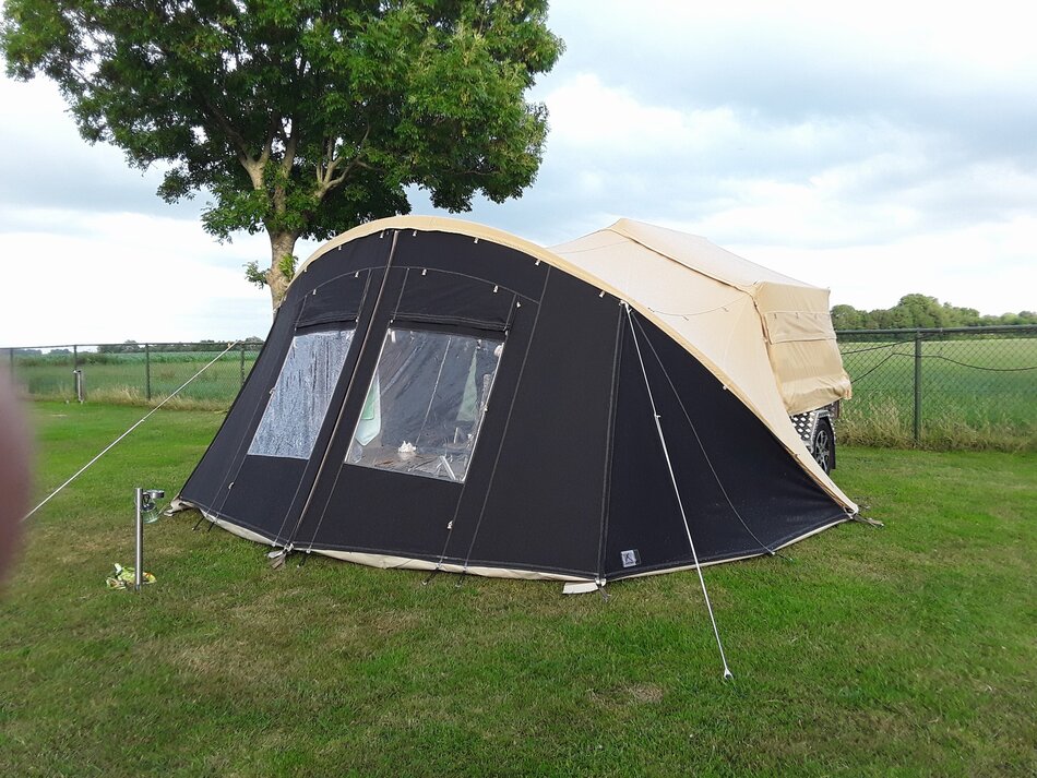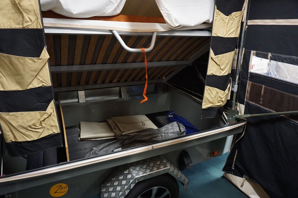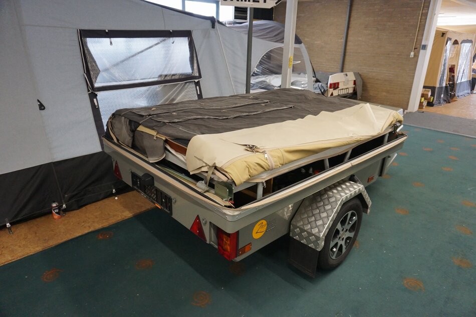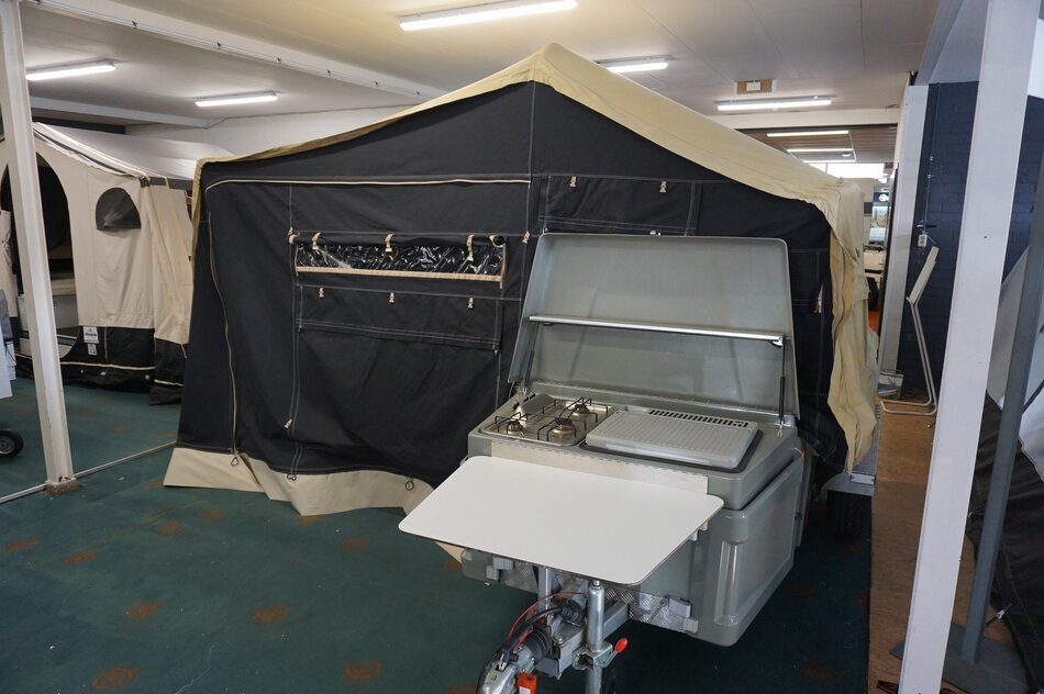 Zambezi River lodge Crossroad in zeer goede staat. Stoere kunststof wagen met enorm veel bergruimte, eenvoudig op te zetten. Luxe keuken op de dissel met 3 pits gas en koelkist. inritsbaar kuipzeil. Grote boogluifel met windhoeken en voorwand. Prachtig panorama dak met hor.