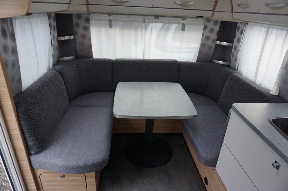Prachtige Dethleffs Camper 470 FR. Rondzit en frans bed. Ruime keuken met grote lades en hoge koelkast. Compleet uitgevoerd met vloerverwarming, indirecte verlichting en spots op rail. Caravan mover. Panorama luifel. Antihageldak.