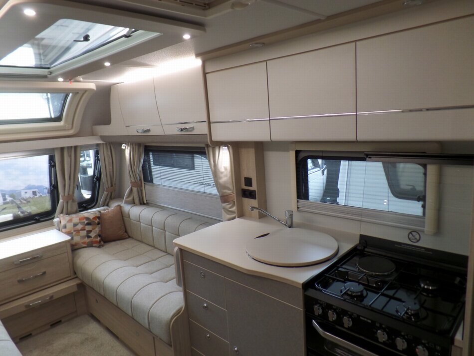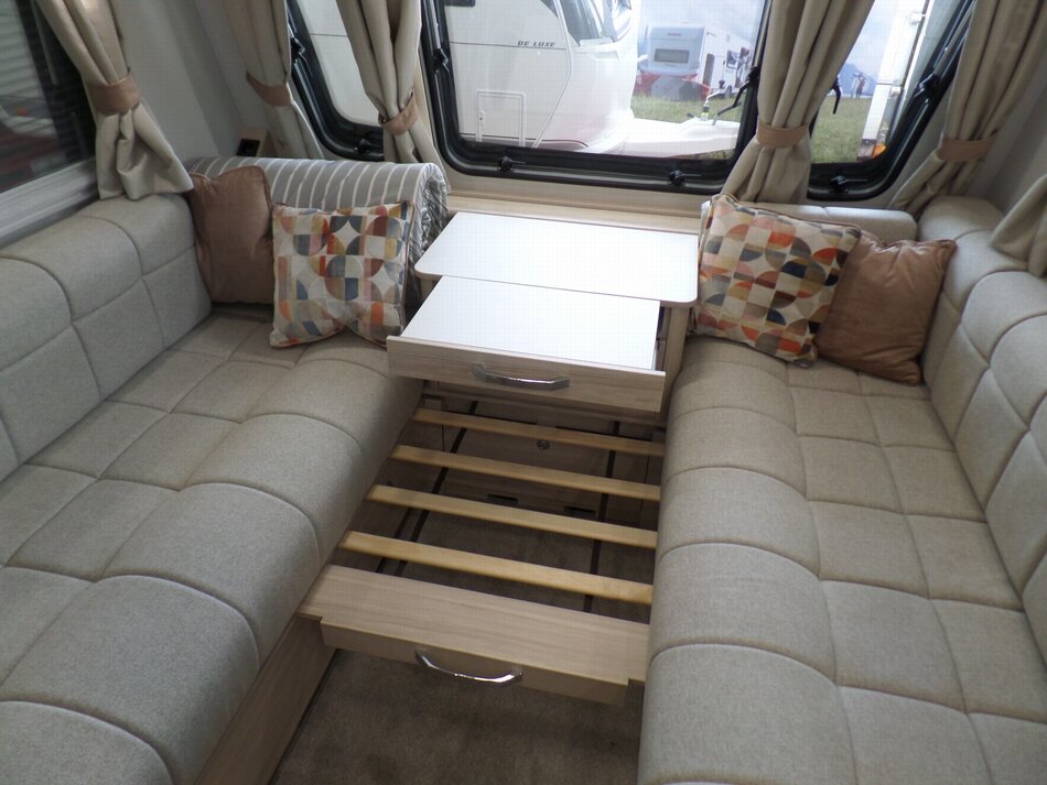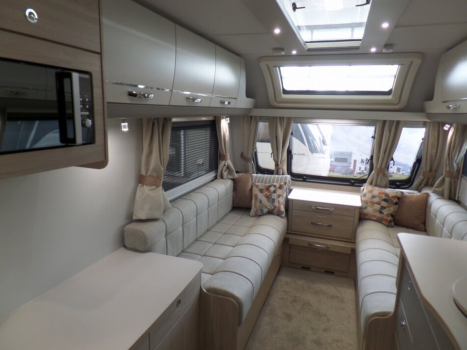Elddis Avanté 520. Prachtige luxe caravan met ruime op comfortabele kussens. Bed om te bouwen op een lattenbodem of aprt slapen. Brede ruime keuken met veel bergruimte. Kooktoestel met oven /grill 3 pits gas en 1x electrisch. Underfloor boiler en kachelsysteem. Riante toiletruimte met toilet en separate douchecel.