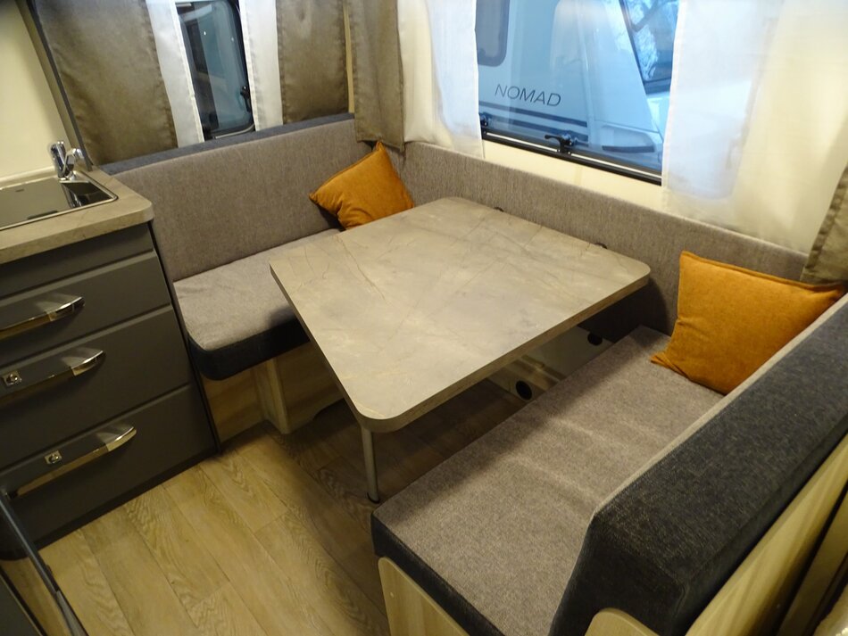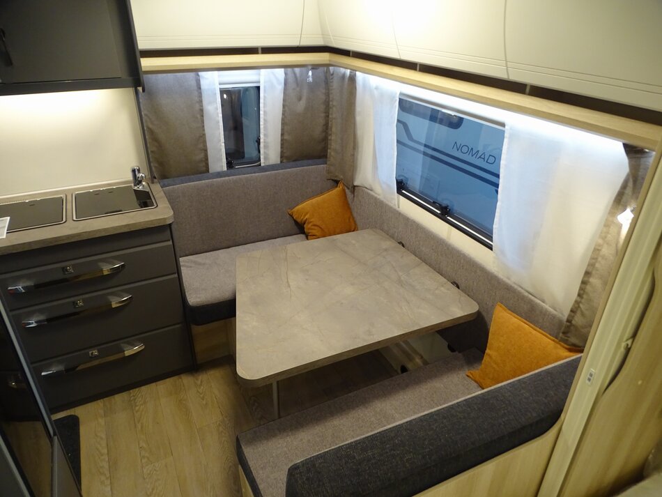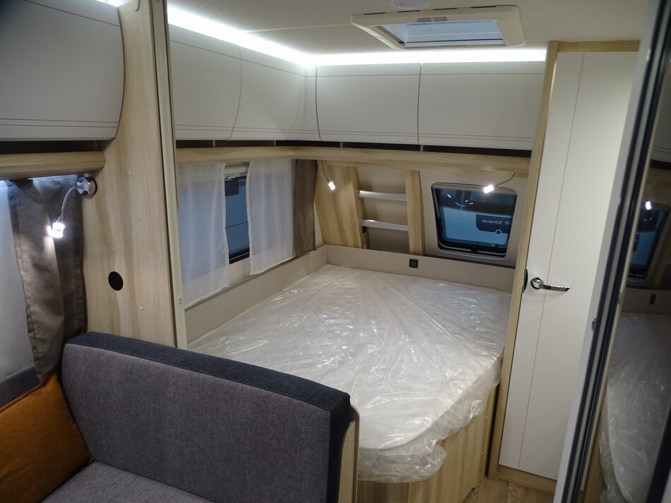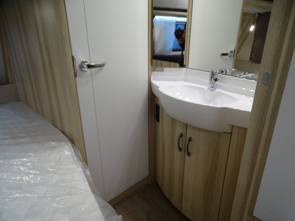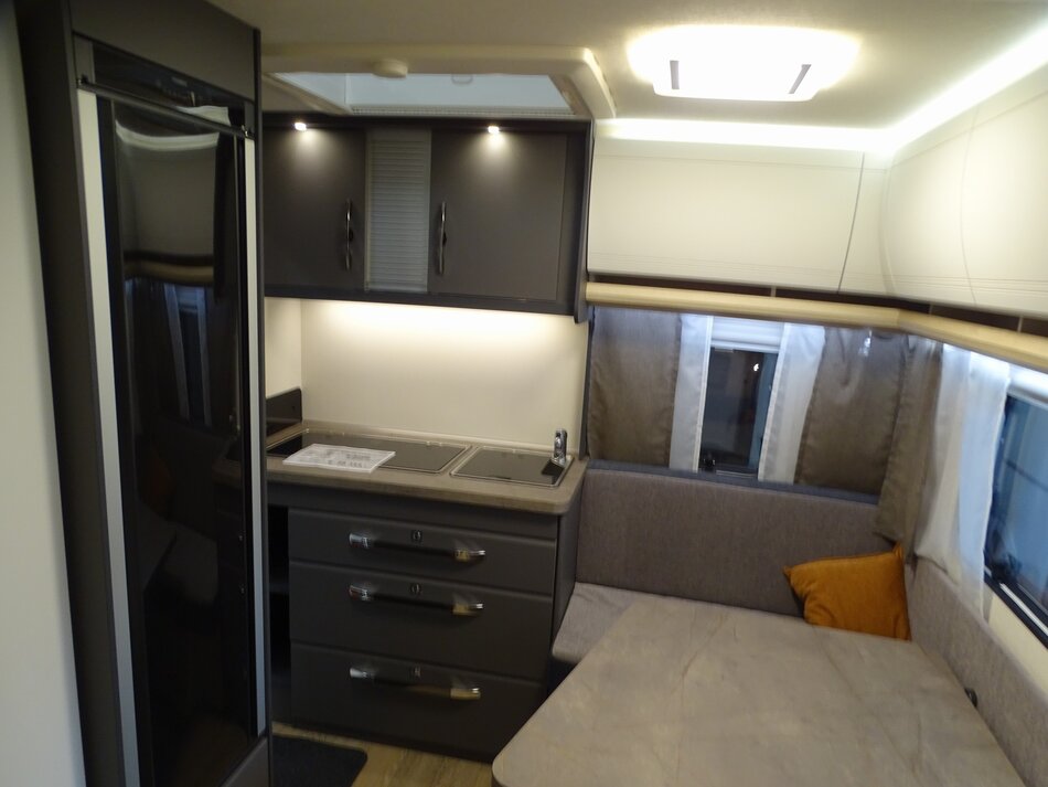 Ruime keuken met grote lades, dubbelzijdige koelkast 133ltr. Optie: Indirecte verlichting, tapijtset. Prijs rijklaar 28.355.-.