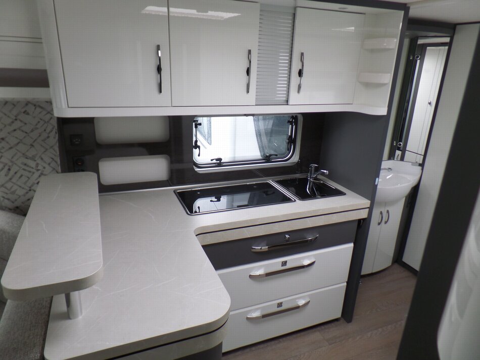 Basisprijs voor deze caravan is: € 36.250,-. Dit getoonde model is uitgevoerd met de volgende opties: Aslastverhoging 2000 kg incl. lichtmetalen velgen ipv 1600 kg, Vloerverwarming, Combi 6 e kachel i.p.v. combi 6. Prijs incl. opties € 39.255.-