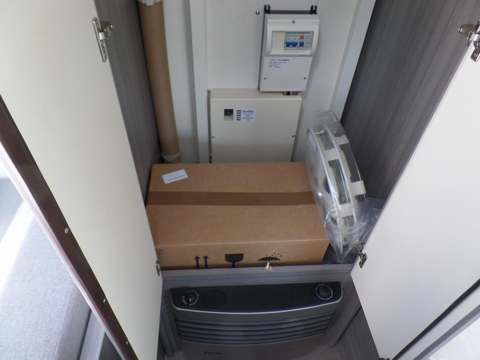 Nieuwe Hobby On Tour 390 SF 2019. Handelbare lichtgwicht caravan met comfortabel bed aan de voorzijde en een ruime treinzit aan de achterzijde. Keuken met veel berg en aflegruimte. Voortent, Fietsendrager achter.