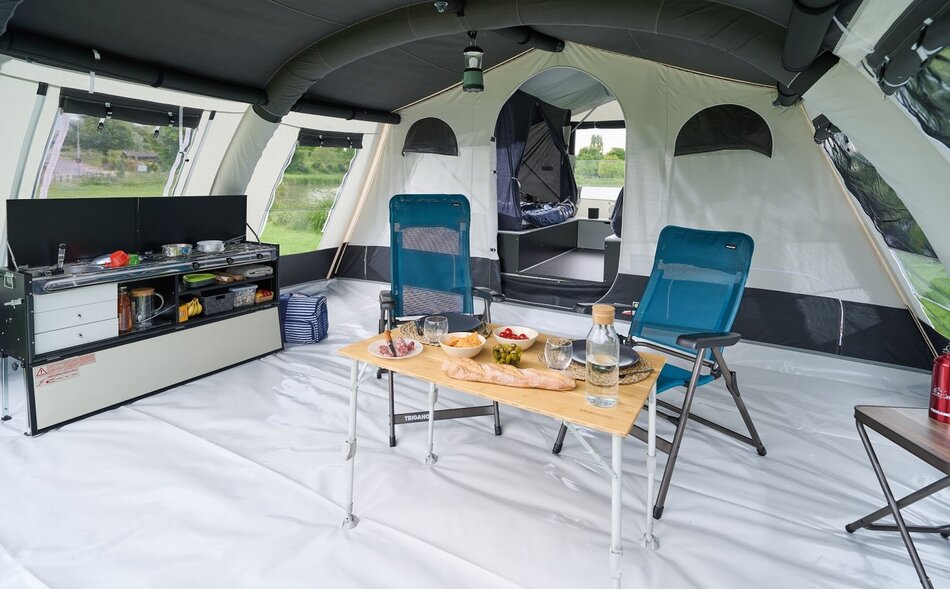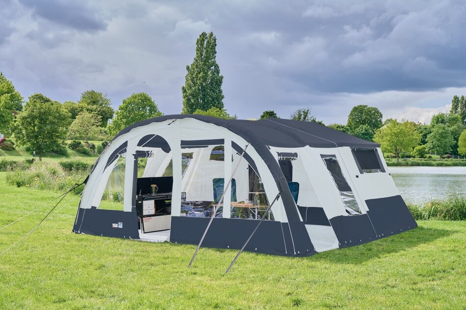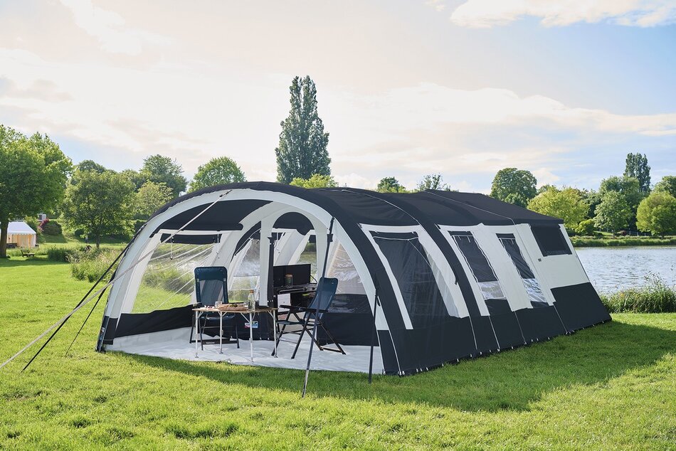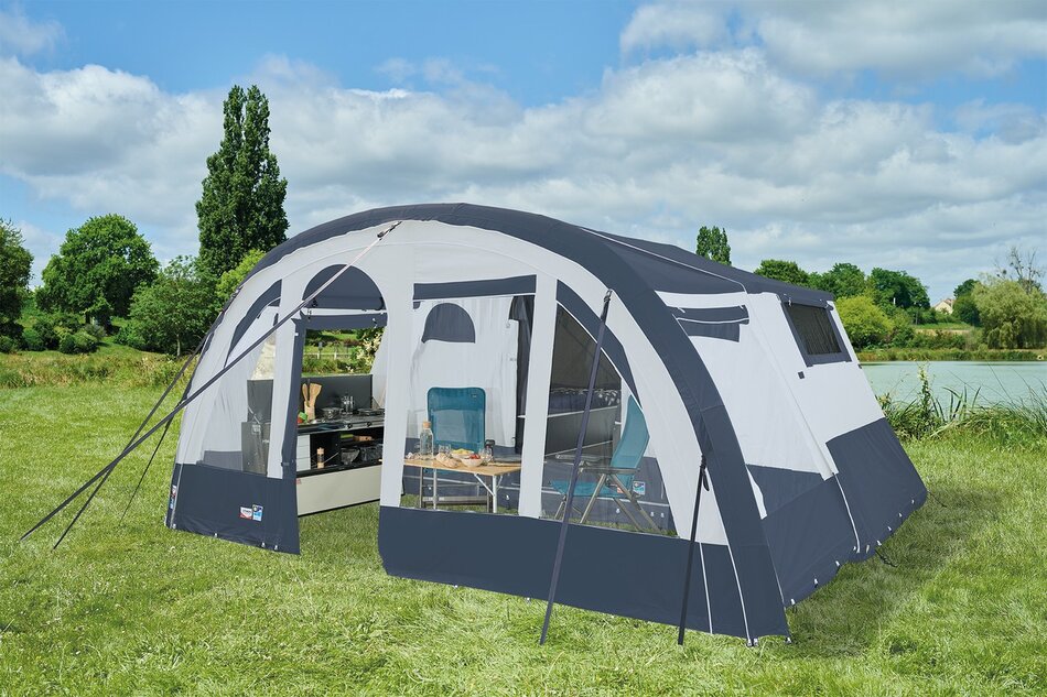 Jamet Air Boogeluifel 2026. Zeer eenvoudig op te zetten wagentent. In een handomdraai is de voortent opgeblazen. Uitgevoerd met ingeritst grondzeil, luxe keuken, grote disselbak. Boogluifel. Voorwand voortent kan in de luifel geplaatst worden. Nieuwe zwarte wagenbak.