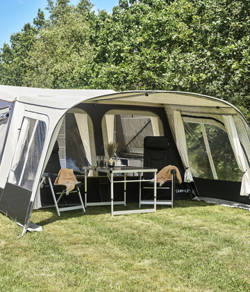 Sinds 1969 staat Camp-let voor Deense kwaliteit en doordacht ontwerp. Alles, van de as tot het tentmateriaal, is ontwikkeld met duurzaamheid en comfort in het achterhoofd. Het lage gewicht en aerodynamische ontwerp maken hem gemakkelijk te manoeuvreren, zelfs voor één persoon. Ideaal voor spontane avonturen, of je nu naar een gezellige camping in het bos, aan het strand of met uitzicht op de bergen gaat.